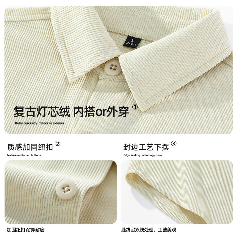 HMN Studio日系复古基础春秋棉感翻领衬衣男条纹开衫长袖休闲衬衫