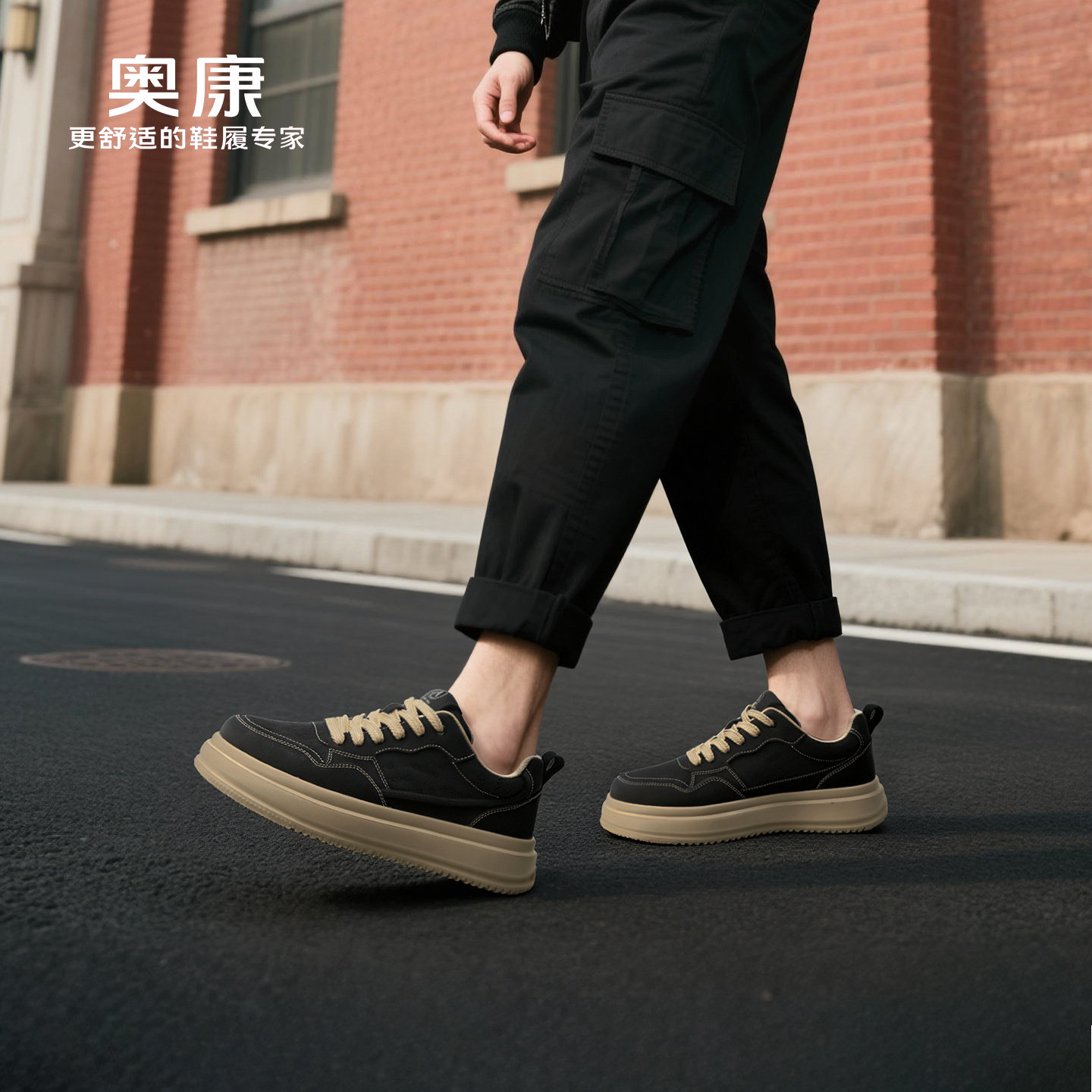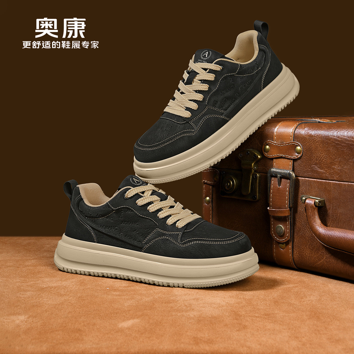 奥康 男鞋正品工装板鞋男休闲青少年高级复古运动潮流百搭厚底鞋W