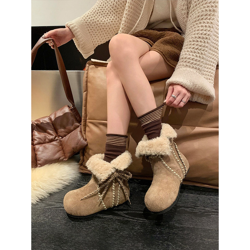 Chio2nd南风 雪地靴棉鞋2024新款冬季女士厚底加绒皮毛一体鞋子