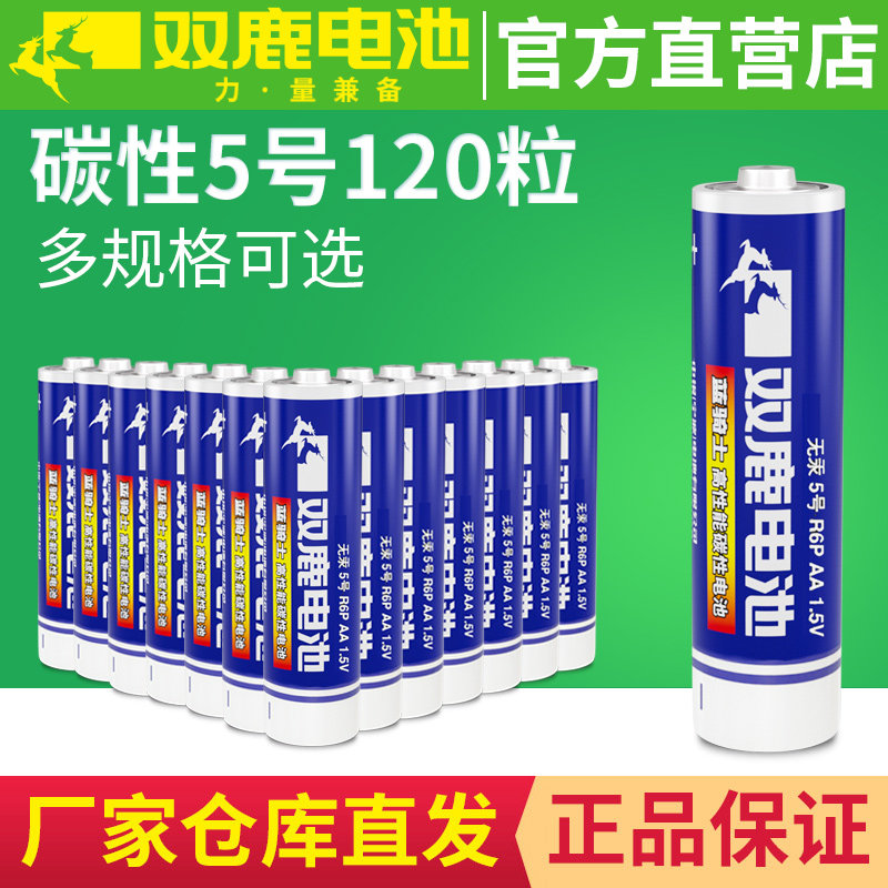 双鹿电池5号120粒玩具闹钟五号碳性批发挂钟普通干电池遥控器正品AA电池1.5V一次性普通干电池挂钟电视鼠标用