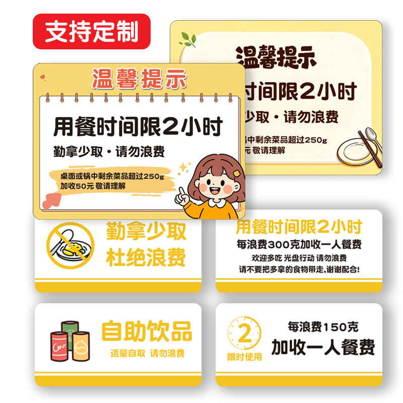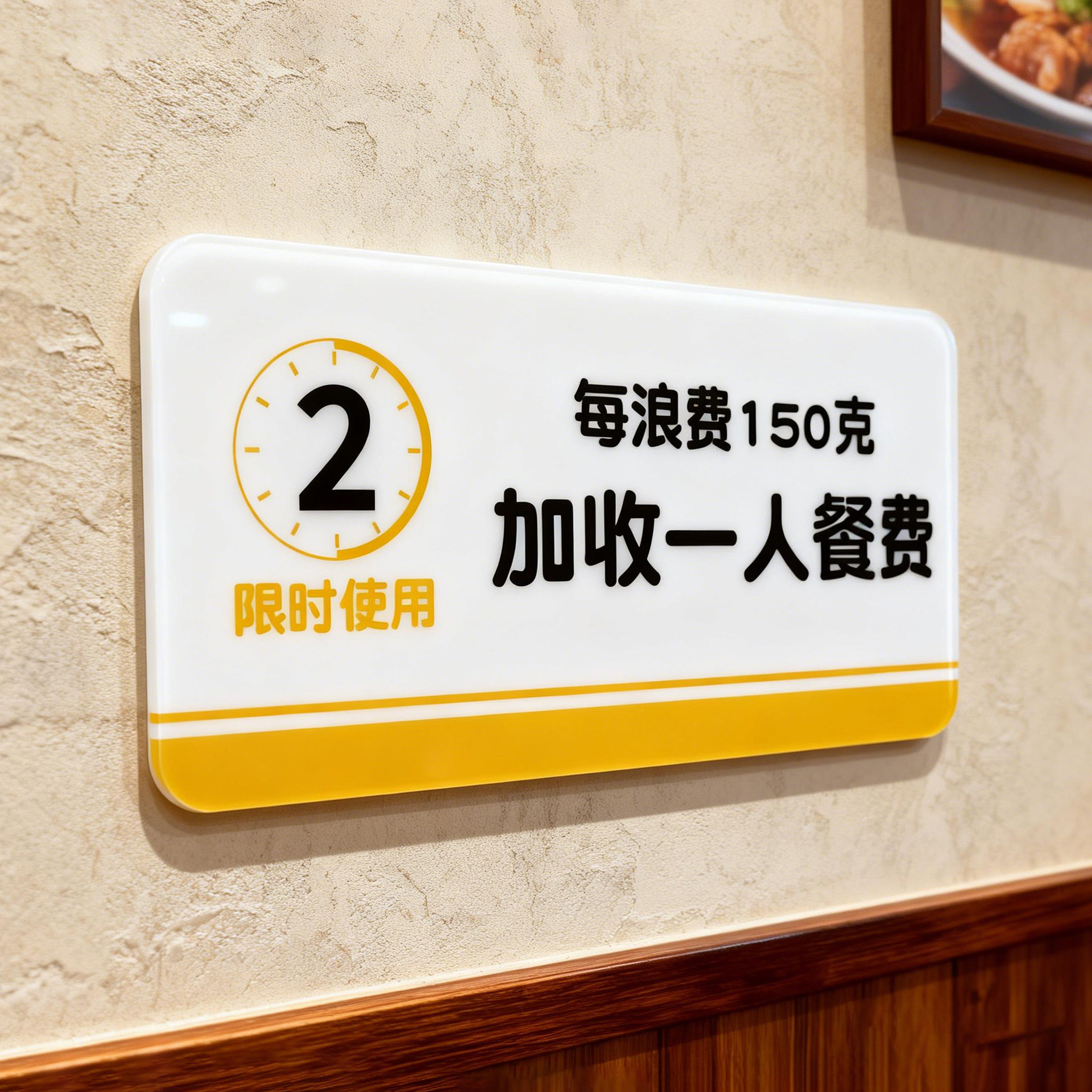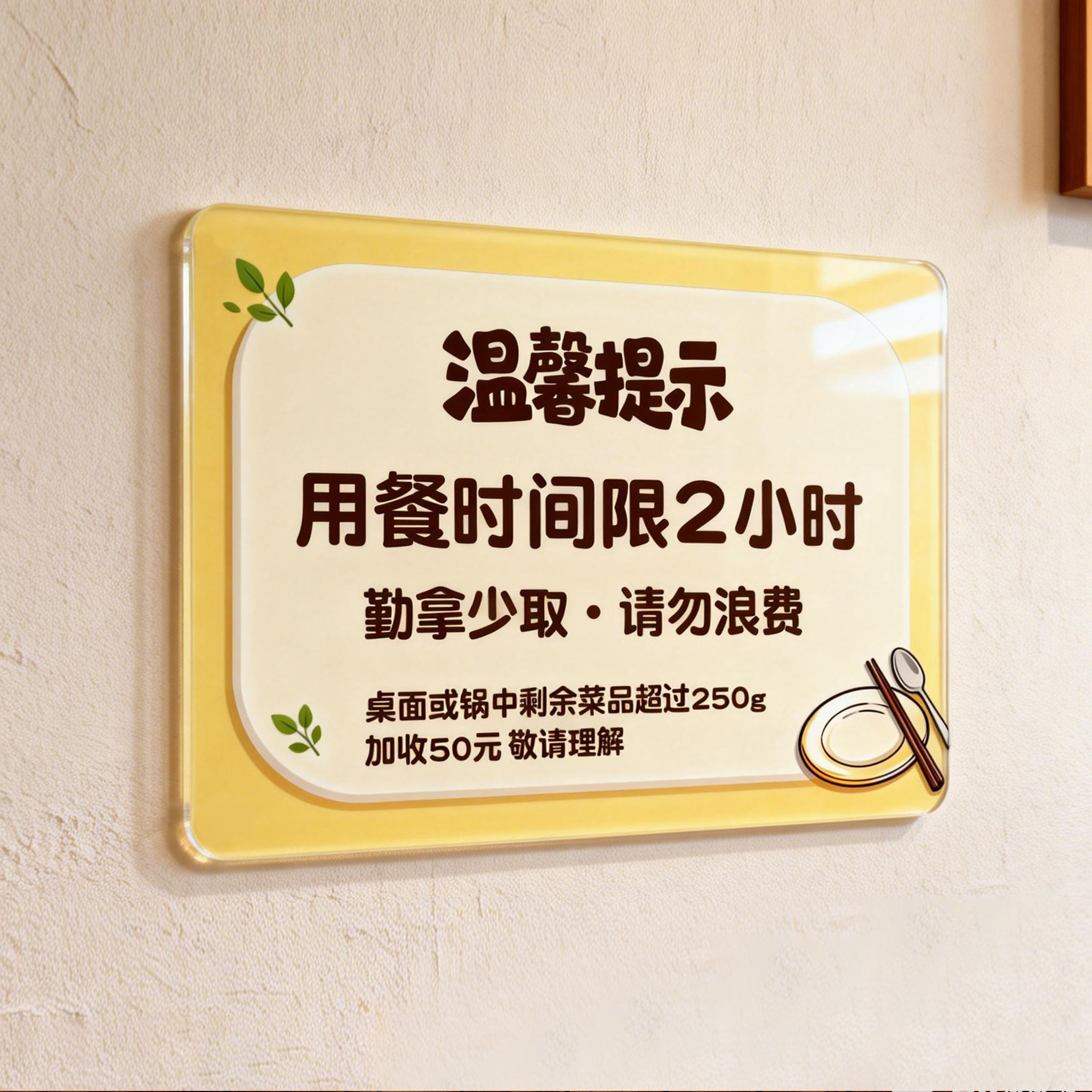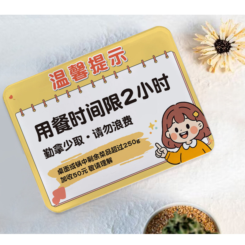 自助餐提示牌火锅烤肉限2小时用餐浪费加收餐费杜绝浪费适量标识