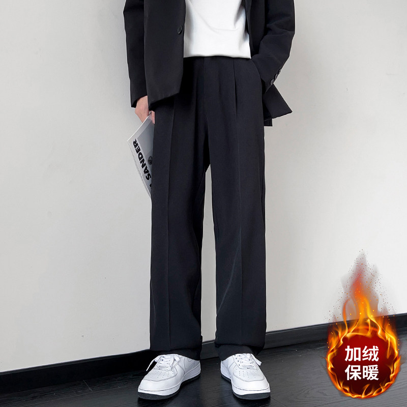西裤男士秋冬季2025新款直筒西装长裤宽松阔腿休闲加绒加厚裤子男