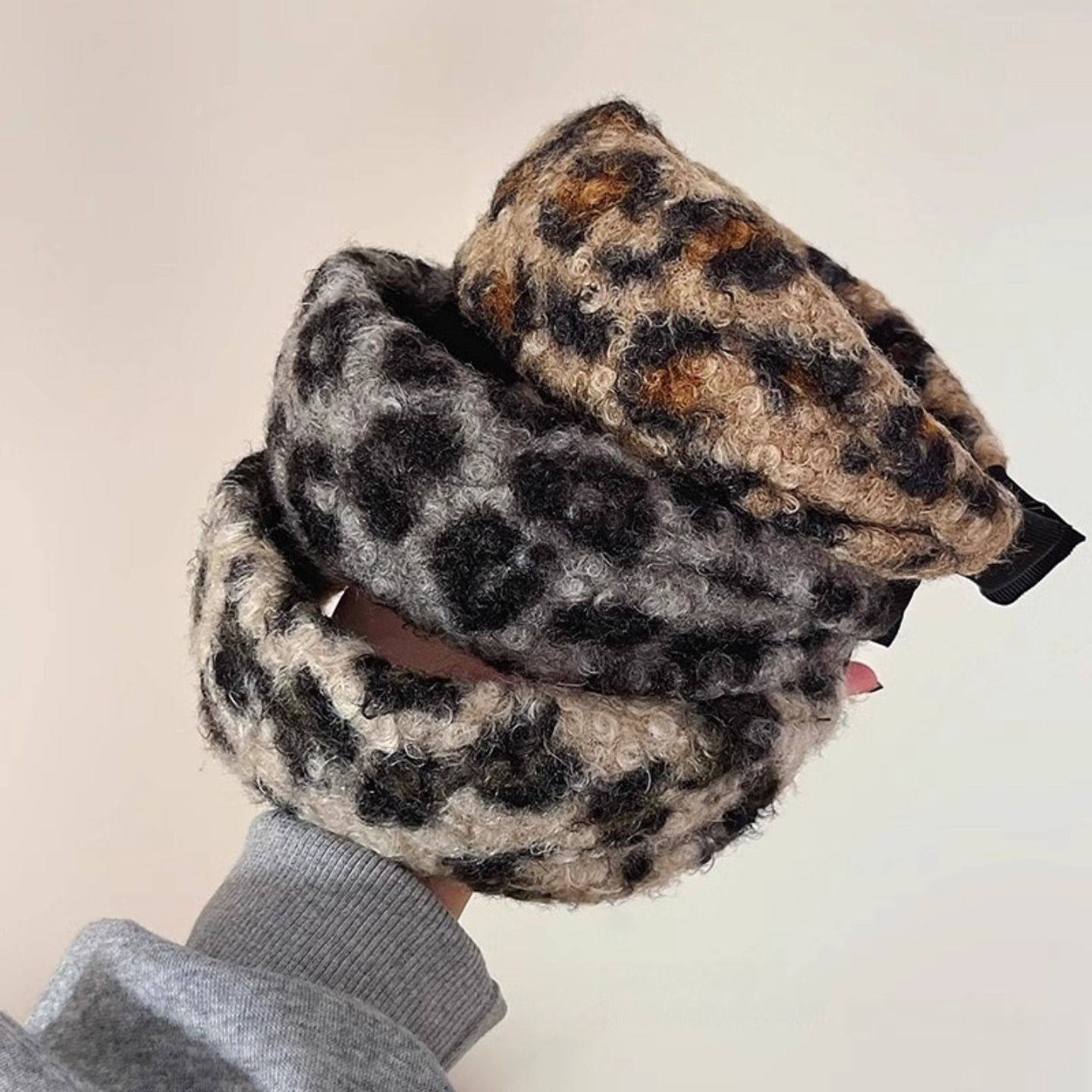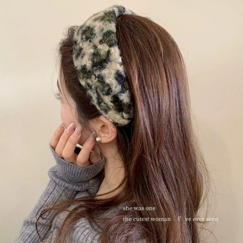 豹纹毛呢宽边发箍秋冬新款头箍高级感高颅顶发卡日常百搭头饰发饰
