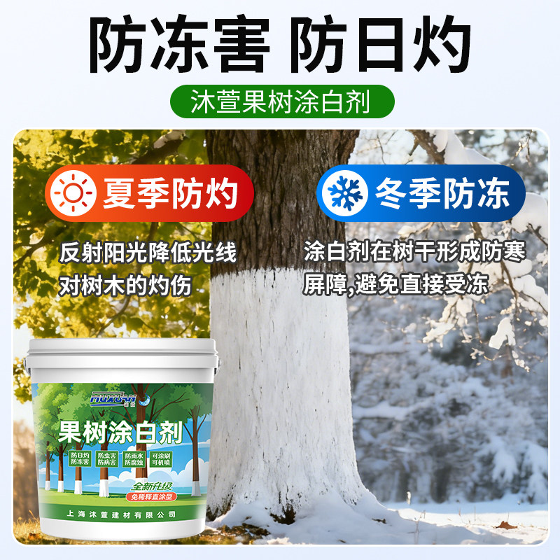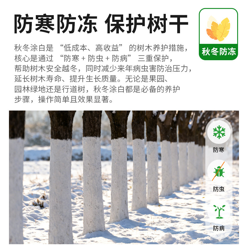 果树涂白剂防虫防冻大树木涂白挤石灰粉刷树白灰涂树保护防寒冬季