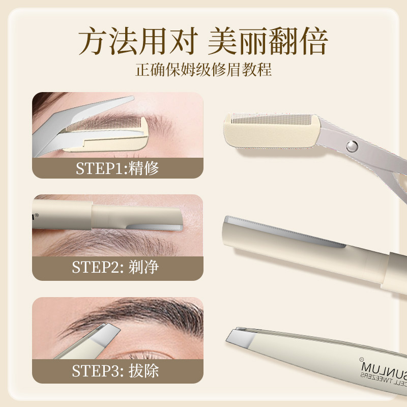 索朗Sunlum新款修眉刀安全型女士专用带梳修眉神器套装男眉夹镊子