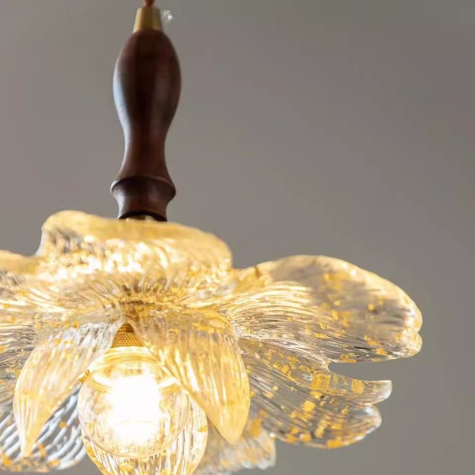 长虹中古花瓣餐厅吊灯胡桃木色简约三头饭厅餐桌灯法式复古吧台灯