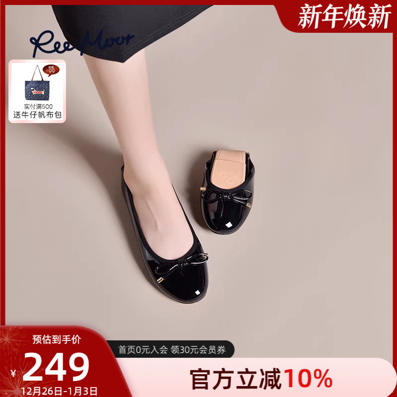 REEMOOR睿慕2025年秋季新款浅口单鞋芭蕾船鞋漆皮软底蛋卷鞋女鞋