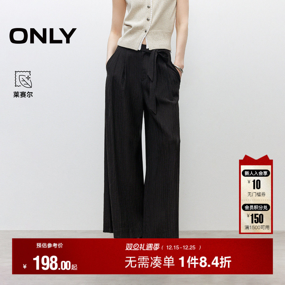 ONLY2025秋季新款舒适莱赛尔淡人条纹肌理垂感宽松阔腿休闲裤女