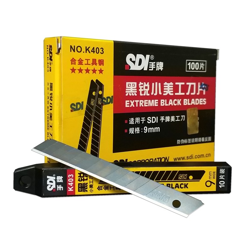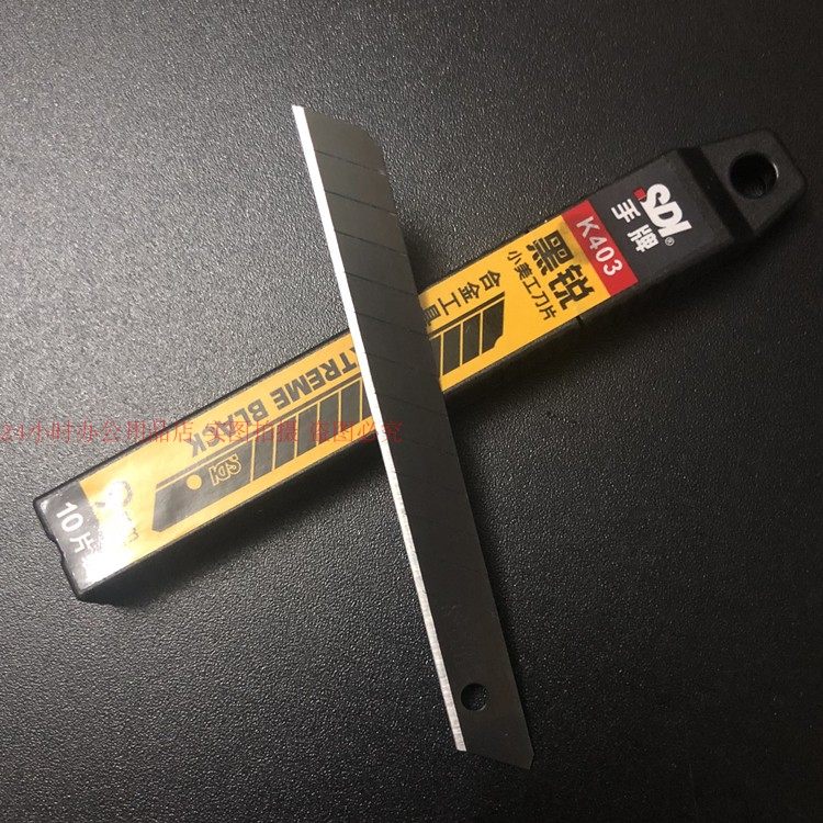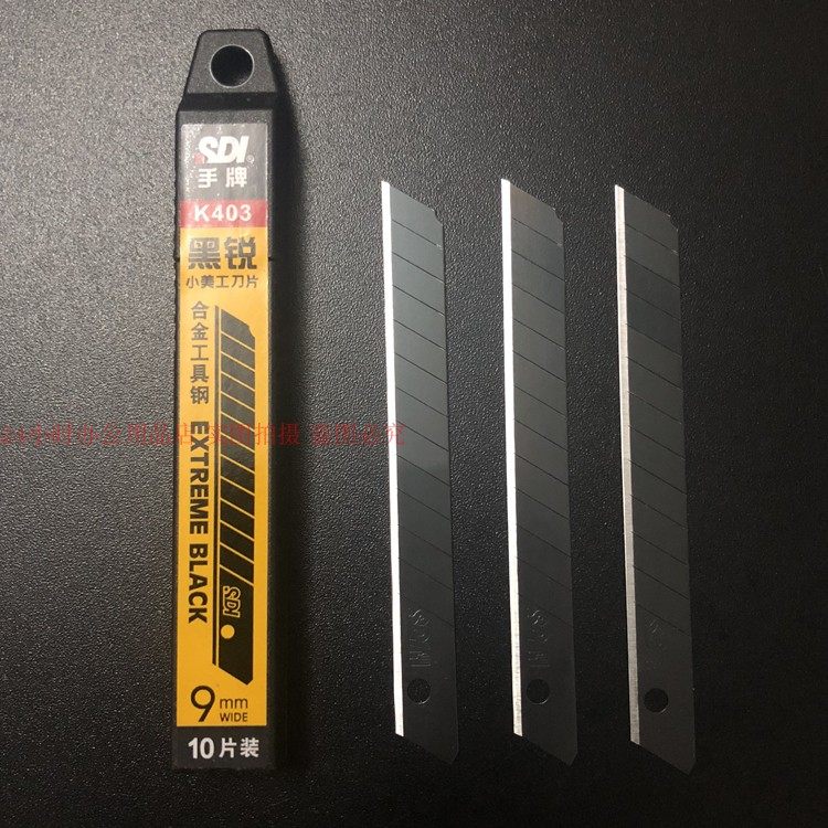 100片包邮手牌K403全黑刃小美工刀片进口黑钢9MM皮革壁纸墙布刀片