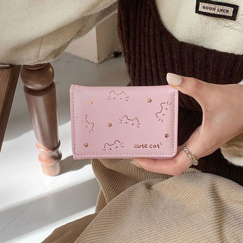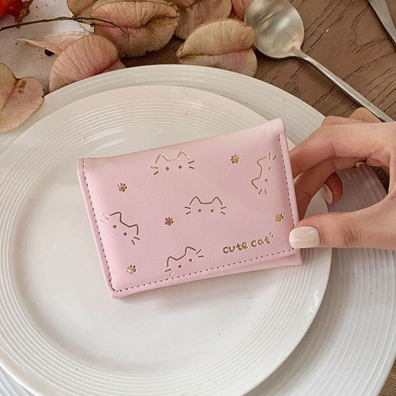 新款短款折叠小钱包女小众设计可爱印花猫咪轻薄迷你钱夹零钱卡包