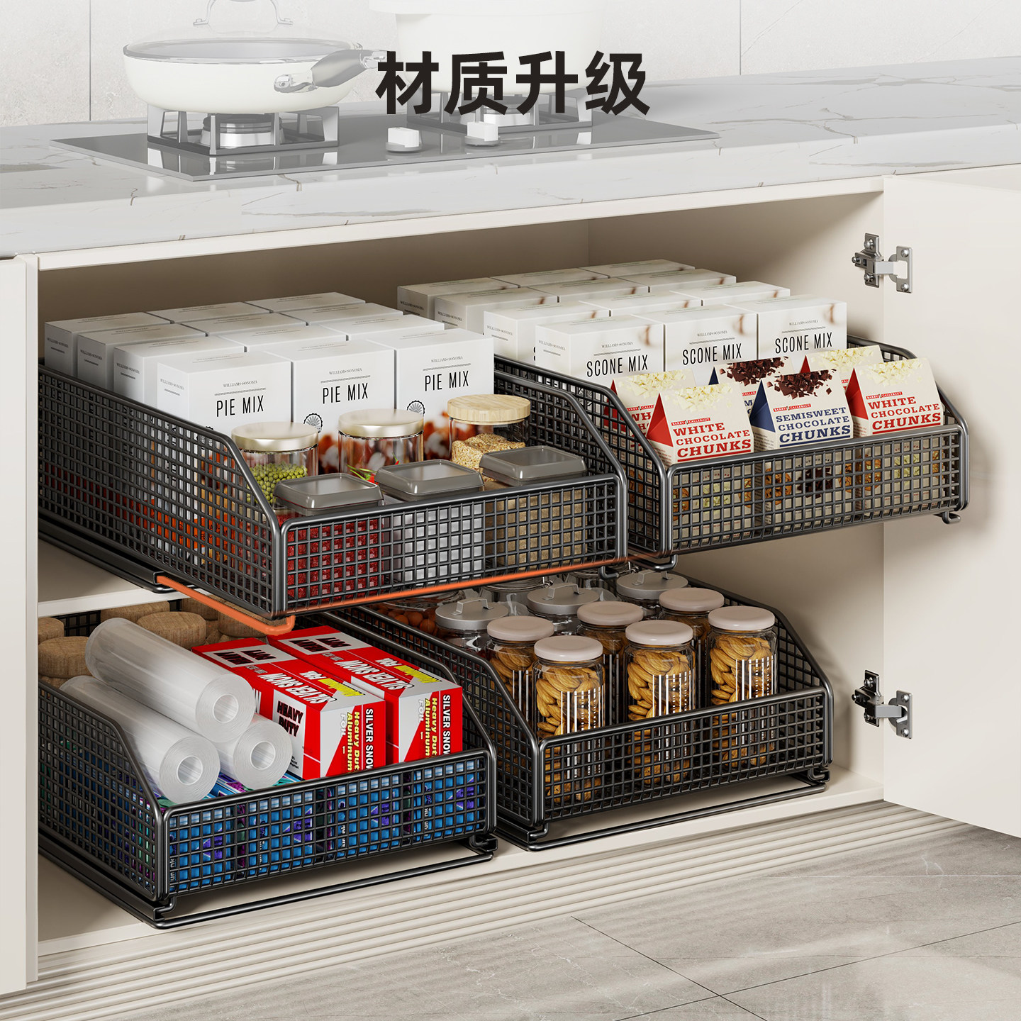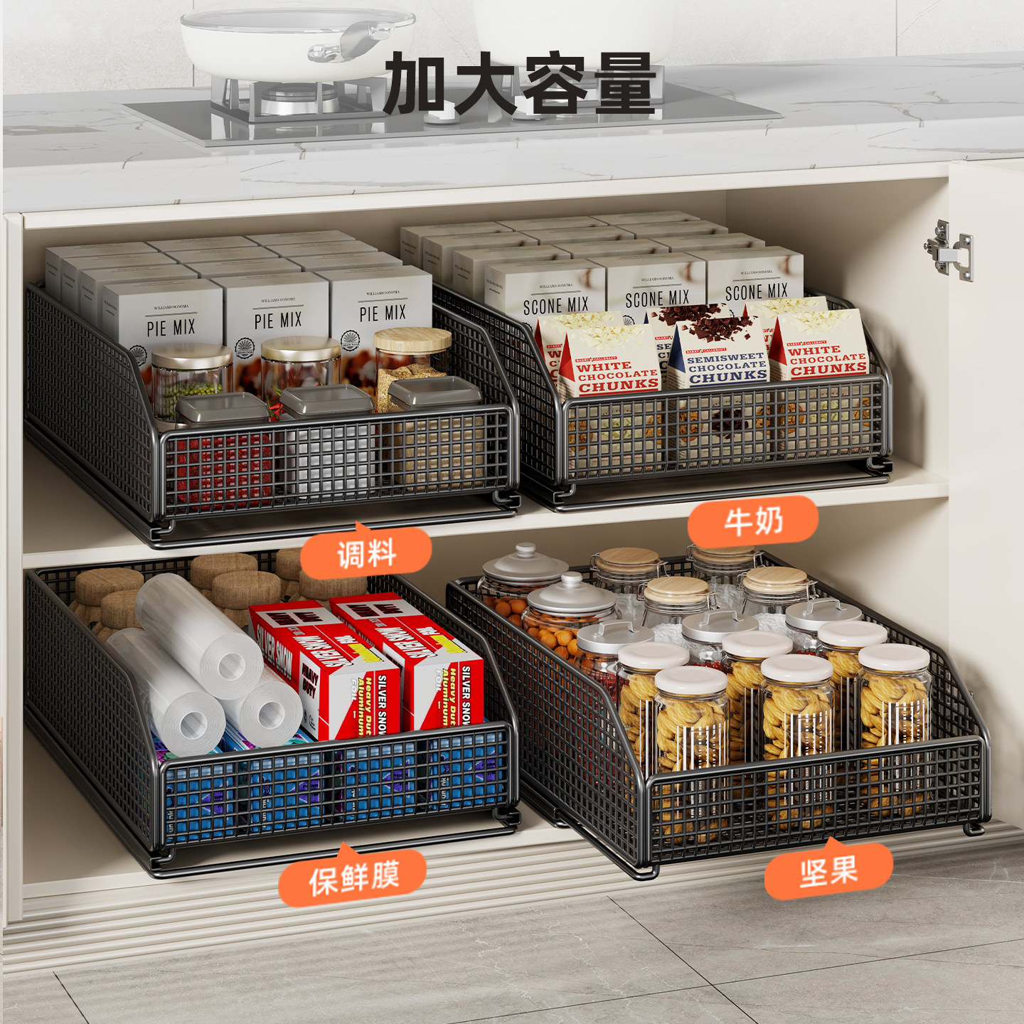 厨房可抽拉置物架橱柜内抽屉式收纳盒橱柜下多层大容量调料储物架