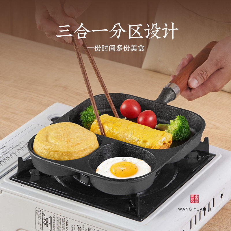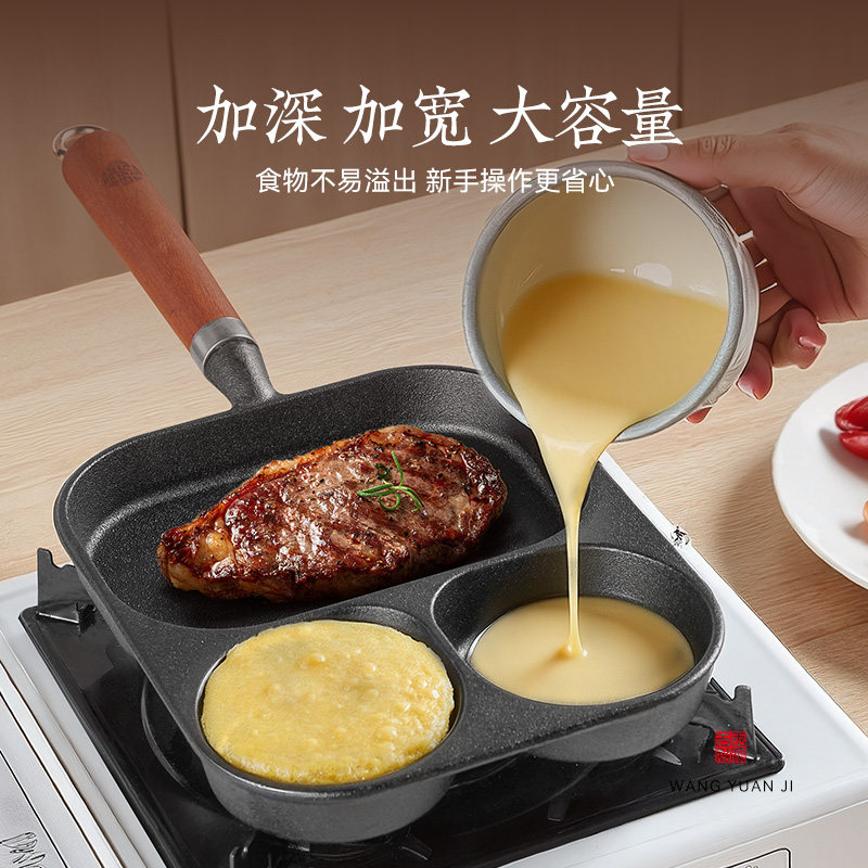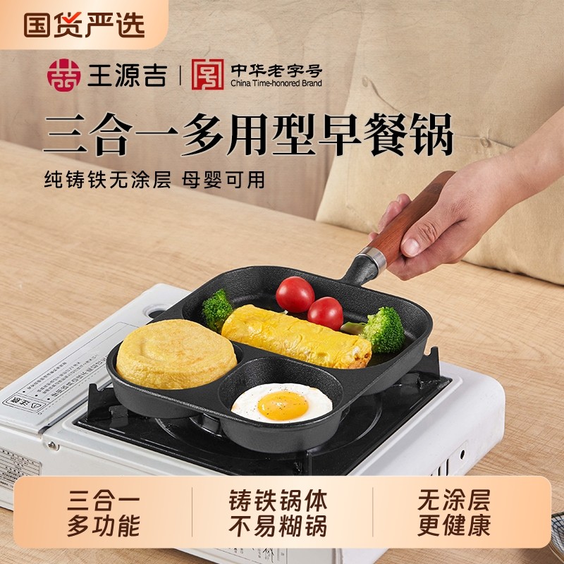 王源吉煎蛋锅早餐锅玉子烧煎锅鸡蛋汉堡铁锅三合一无涂层煎蛋神器
