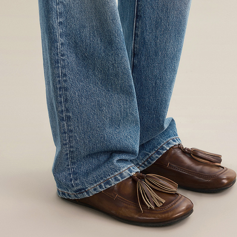 赛络纺纱技术,裤脚微喇呈现微微堆量