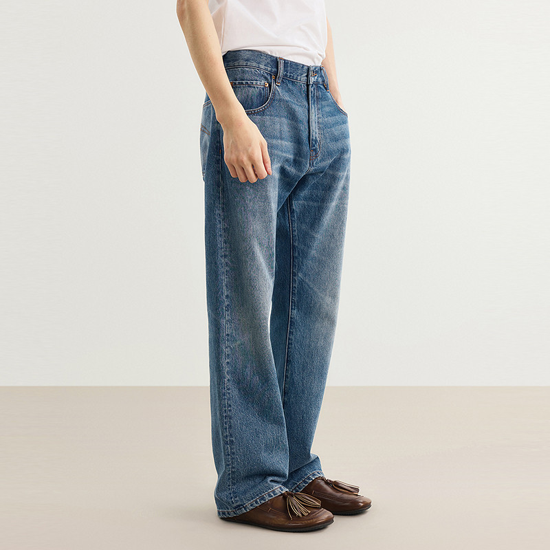 森柔牛仔森马牛仔裤男款2025新直筒裤长裤原色复古美式水洗宽松潮