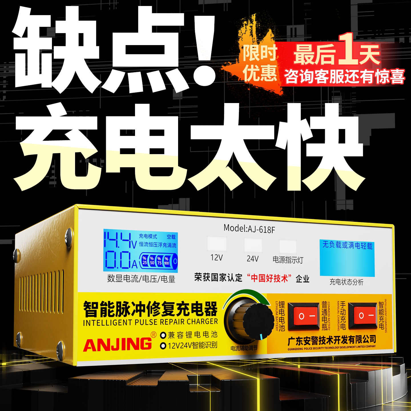 12V24V汽车电瓶充电器智能全自动蓄电池大功率充满自停充电机
