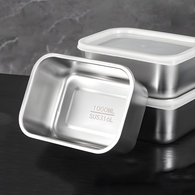 316不锈钢保鲜盒带盖午餐肉长方形食品级密封收纳盒水果盒冰箱