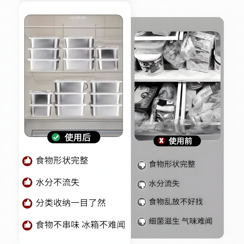保鲜盒不锈钢食品级冰箱专用家用带盖密封便当盒饭盒收纳冷冻盒子
