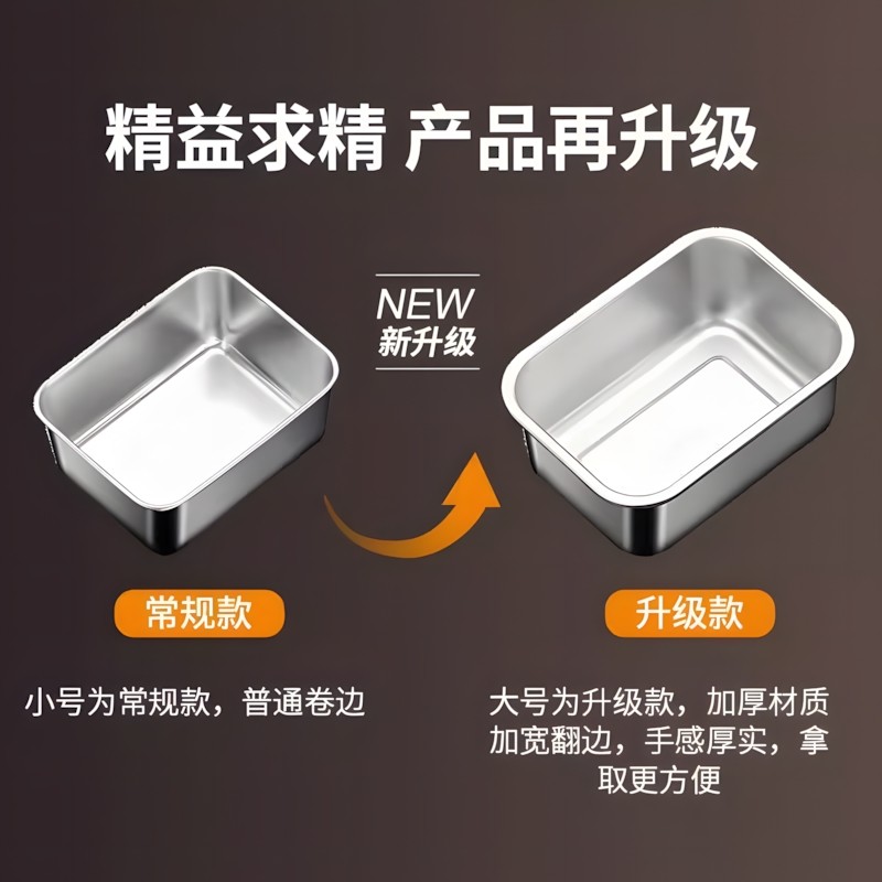 保鲜盒不锈钢加厚食品级方盘冰箱收纳盒带盖子烧烤凉菜盘烤鱼盘子