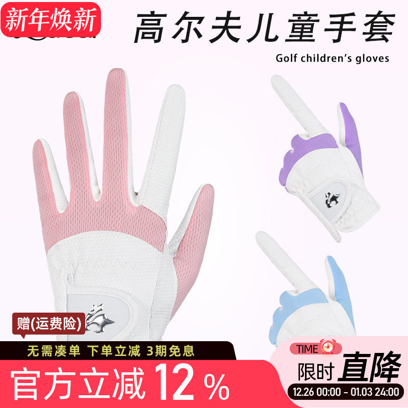 美洲豹儿童高尔夫手套防滑耐磨PU皮革弹力透气网布运动左右手一双
