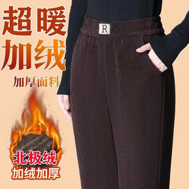 冬季加绒加厚雪尼尔中年妈妈裤高腰弹力外穿灯芯绒保暖休闲直筒裤
