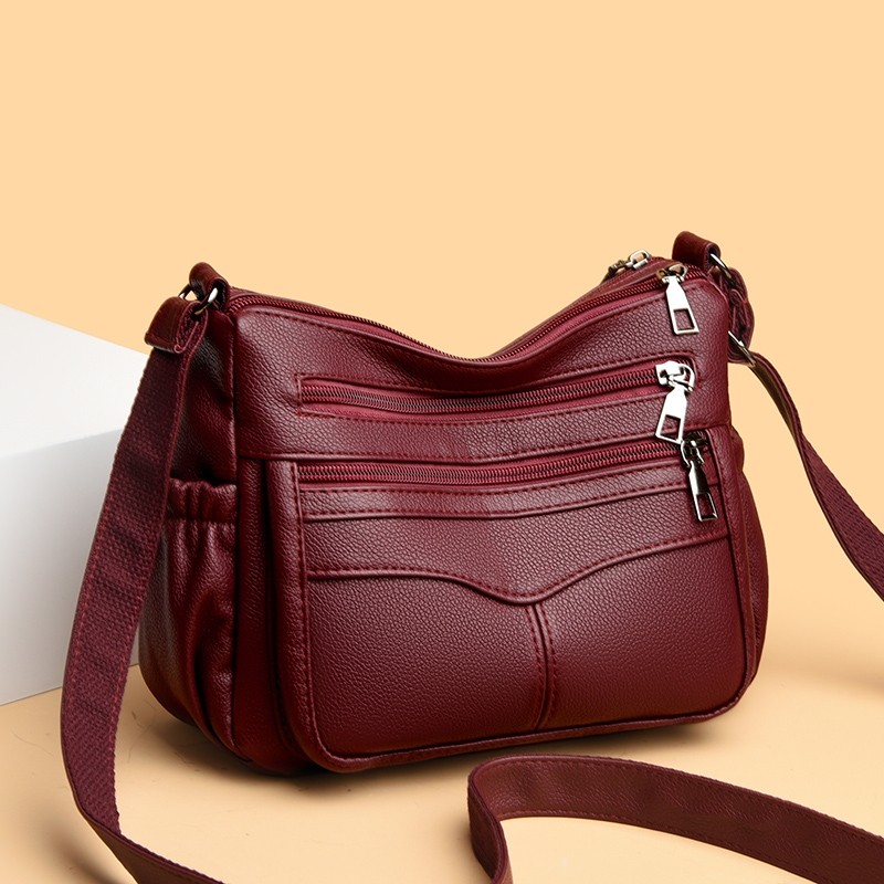 时尚女包2024爆款多层软皮百搭单肩斜挎包大容量中老年妈妈包肩包