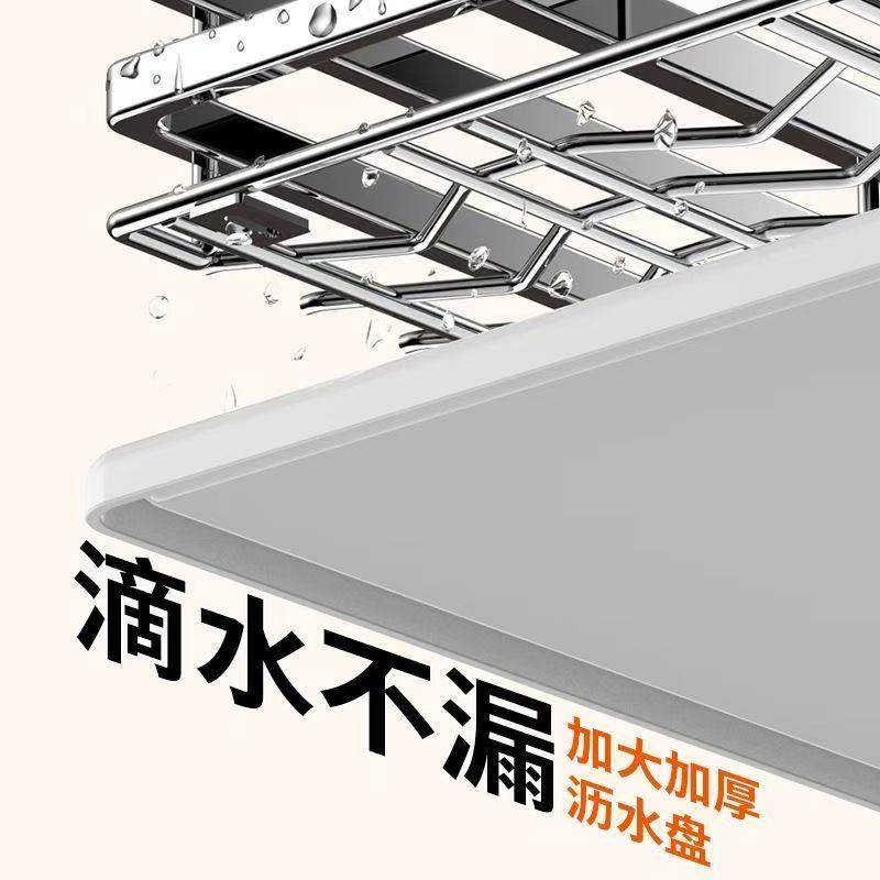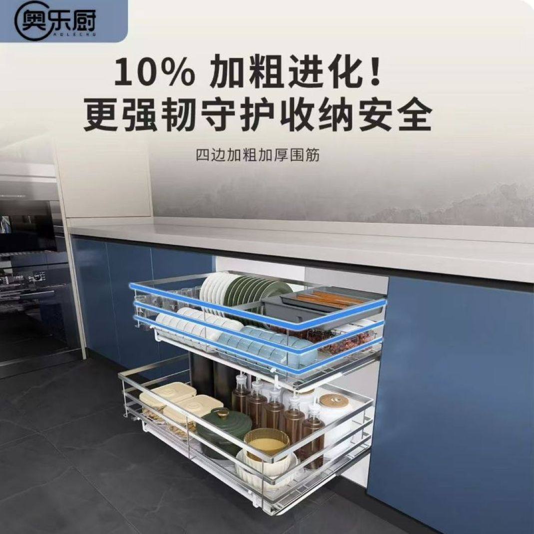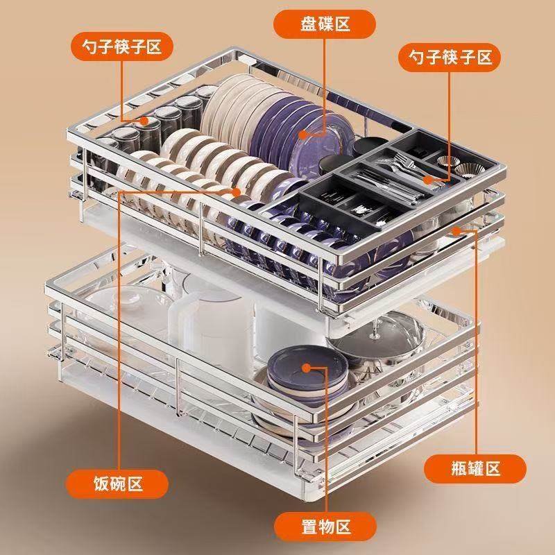 拉篮厨房橱柜双层抽屉式不锈钢碗篮收纳碗架碗碟篮调味篮柜体抽拉