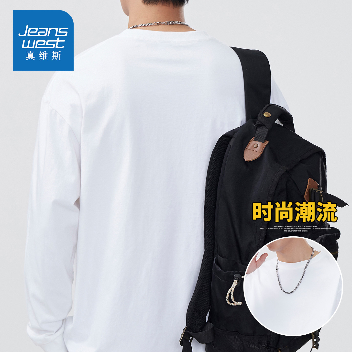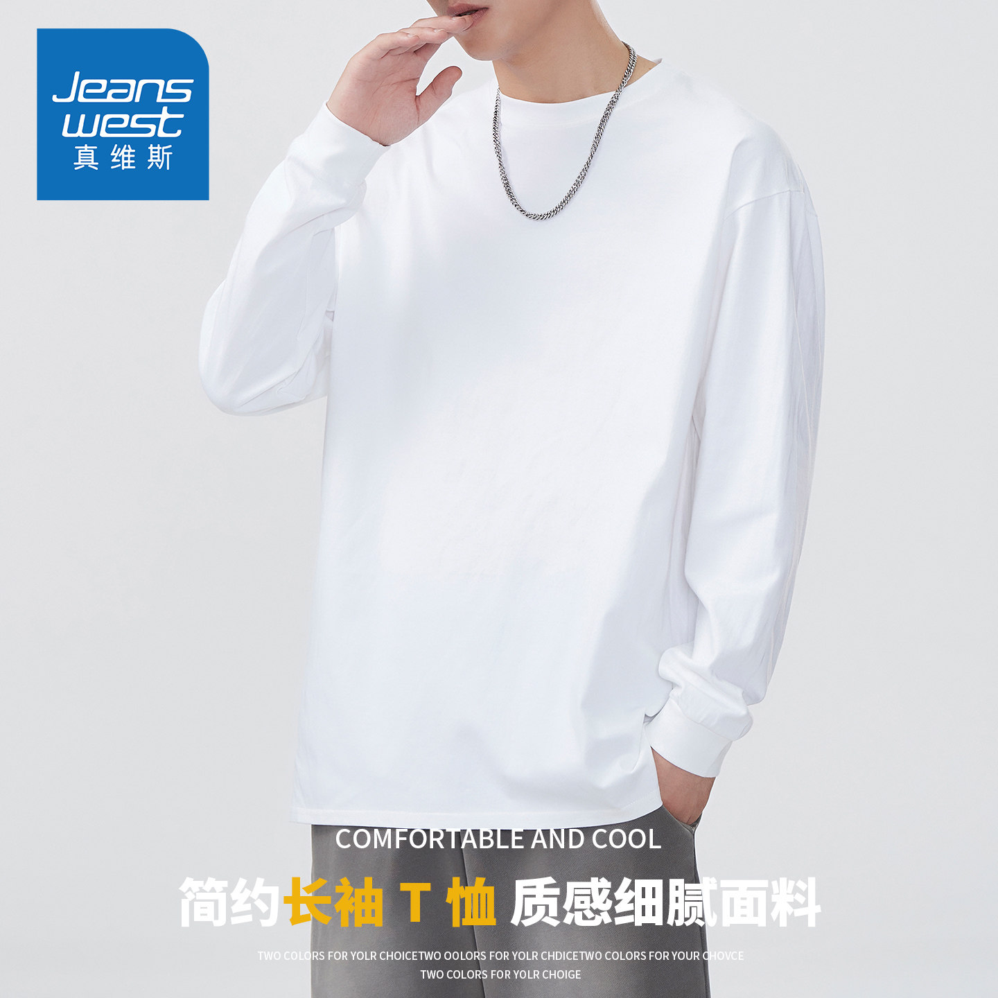 KZH真维斯白色长袖T恤男秋季新款宽松百搭打底衫简约重磅休闲上衣