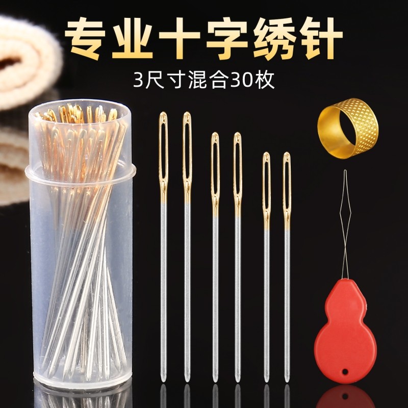 十字绣金尾针刺绣通用专用针钝头圆尖针三股绣花针工具22/24/26号