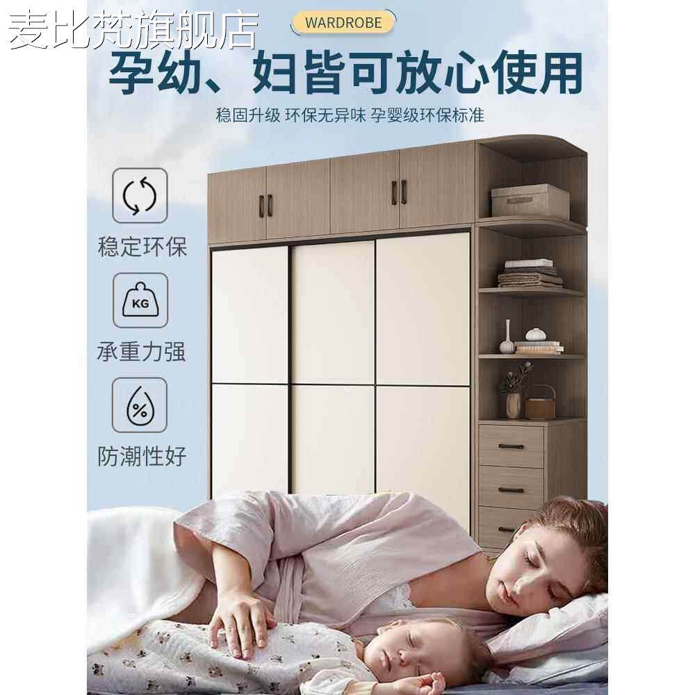 麦比梵简易组装衣 柜 家用卧室现代简约风实木质推拉门儿童挂衣橱出租房用摆件饰品床笠拉车
