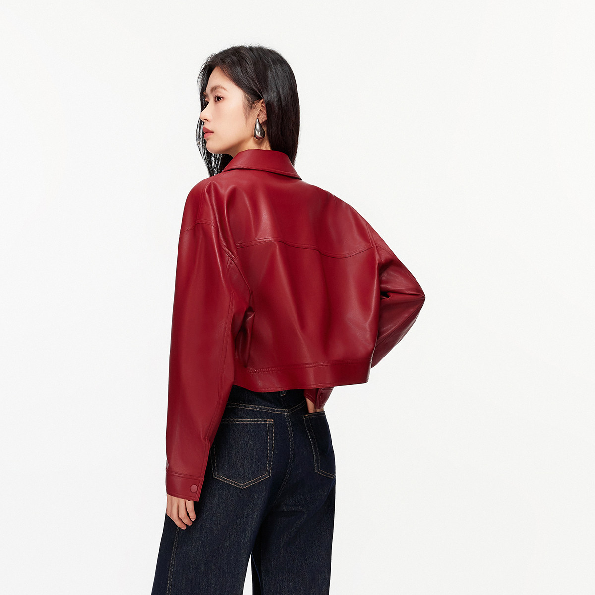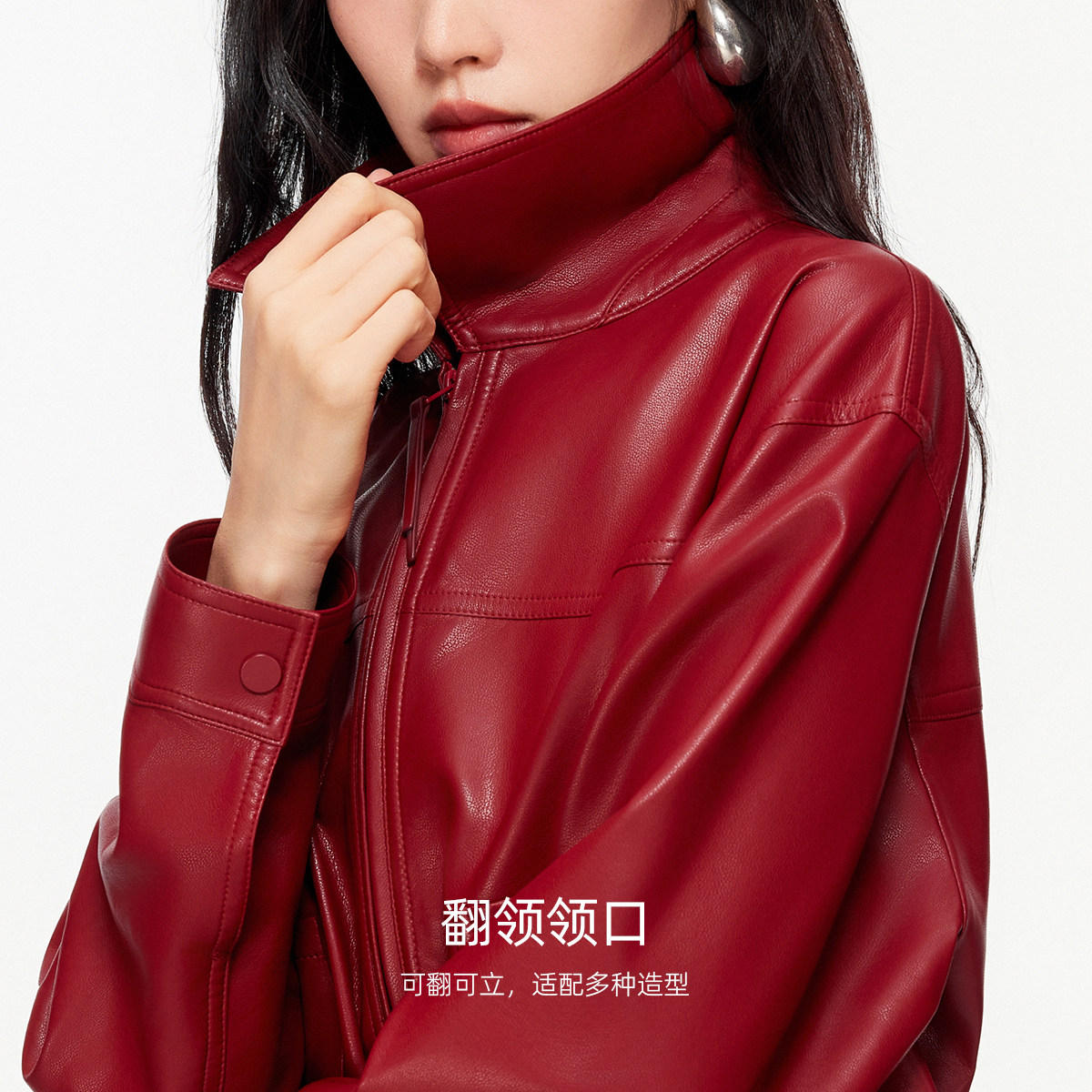 Vero Moda短外套女2026春季新款PU哑光翻领新年红色外套326117005