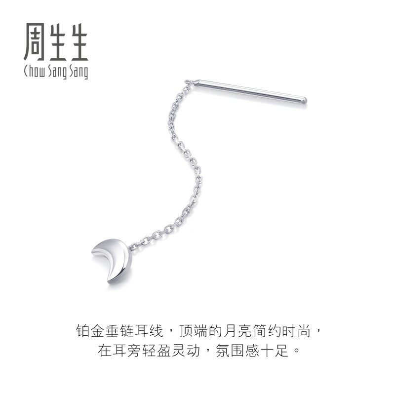 周生生珠宝饰品PT950铂金月亮耳线单边89587E