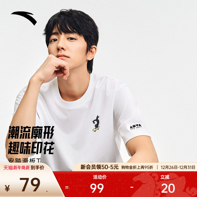 安踏情侣休闲短袖男女同款夏季印花宽松透气冰丝t恤上衣172538107