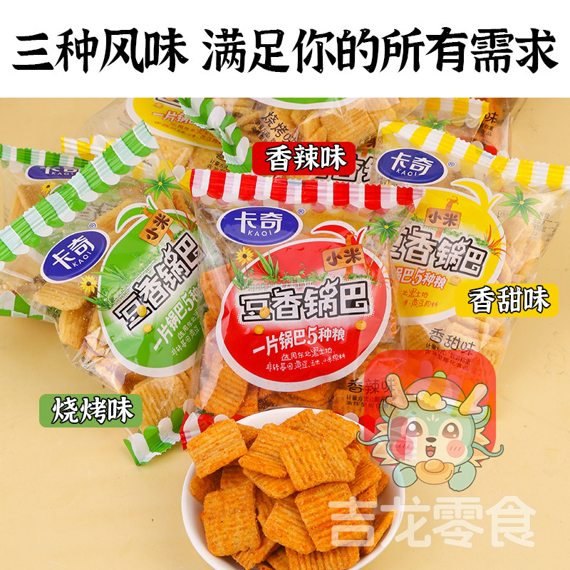 卡奇粗粮小米豆香锅巴休闲零食品酥脆香甜烧烤香辣味独立小包装