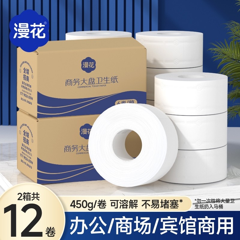 漫花商用大盘纸整箱12卷卫生纸卷筒纸纸巾批发厕所卷纸商场宾馆