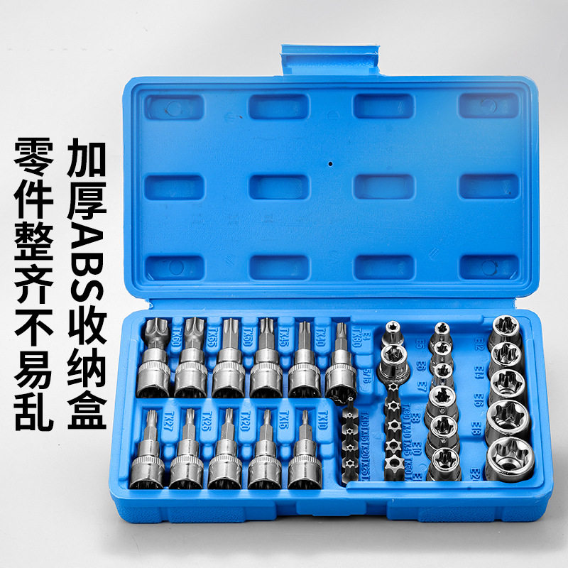跨境新款电动工具套筒批头套装 E型中飞34件套手电钻套筒批头套装