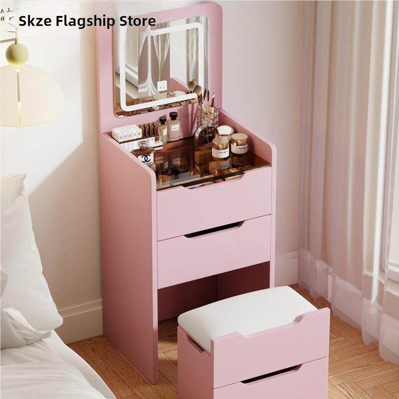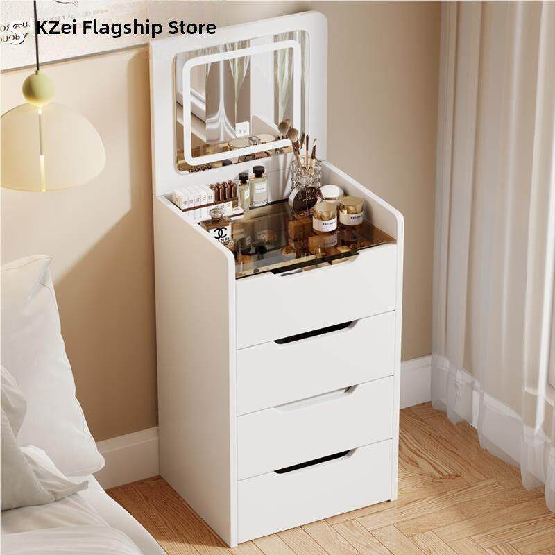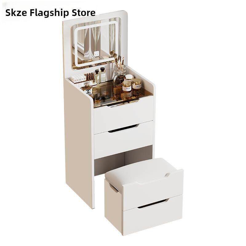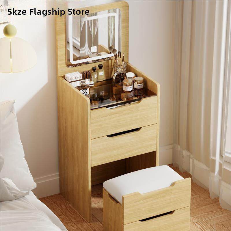 Skze实木折叠梳妆台集成卧室小公寓梳妆台床头柜简单梳妆台镜子翻