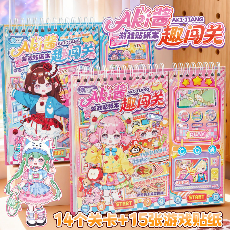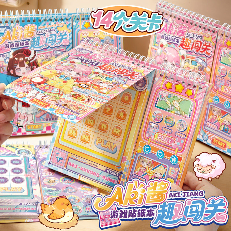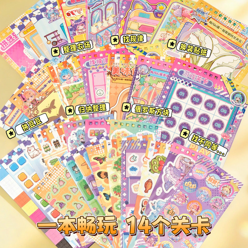 Aki酱闯关游戏贴纸本小学生儿童解压玩具安静书免裁剪手账diy装饰素材小图案贴纸本可爱卡通高颜值造景粘贴画