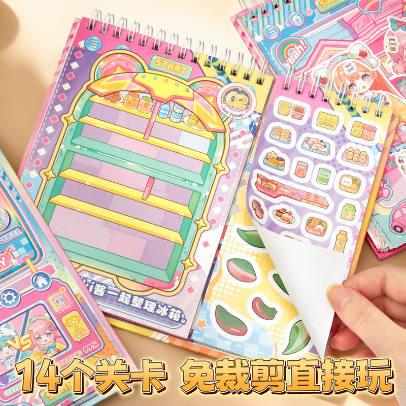 萌崽新款学霸学渣果冻贴纸安静书儿童免裁剪手工粘贴DIY女孩趣味玩具