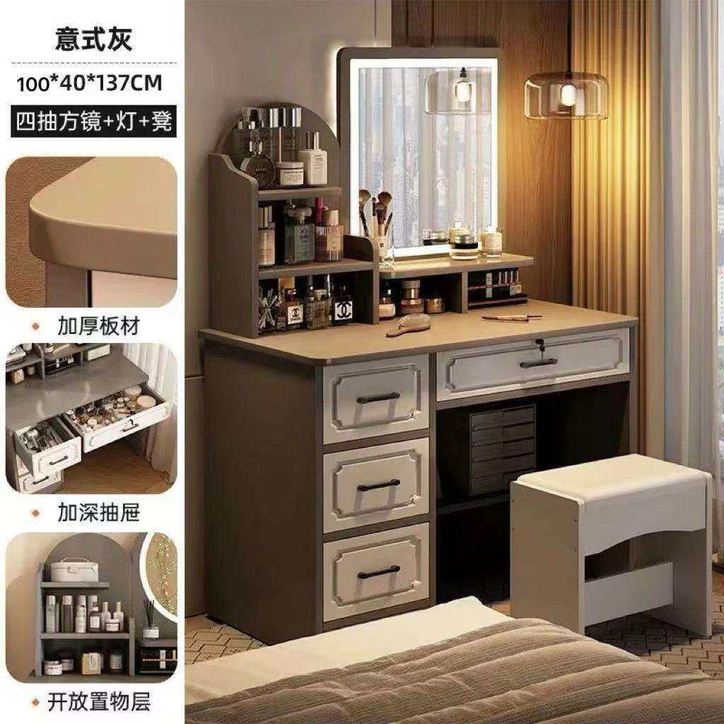 简易收纳柜简约现代梳妆台卧室一体梳妆化妆桌化妆台卧室桌小户型