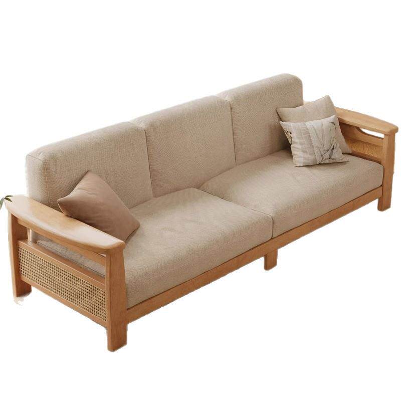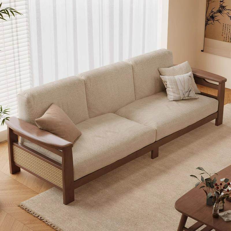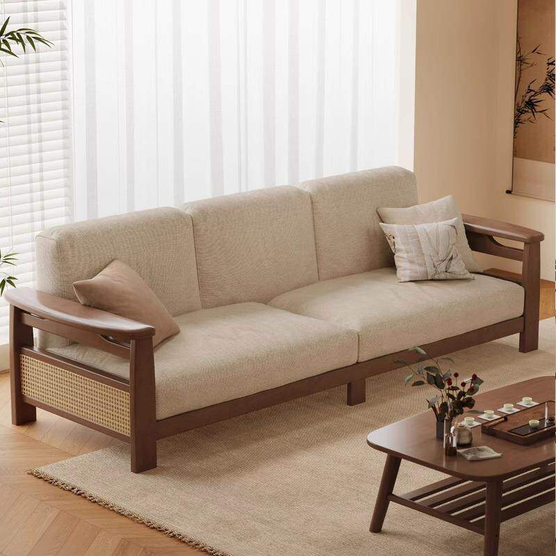 宋代美学实木沙发客厅三人位直排休息区接待中式藤编木质布艺沙发