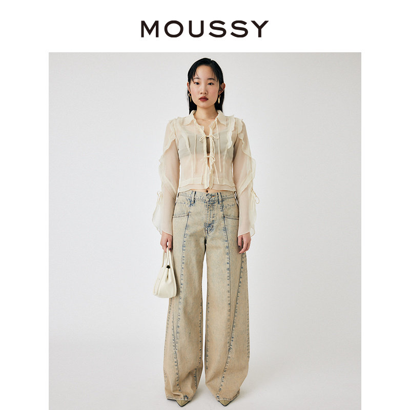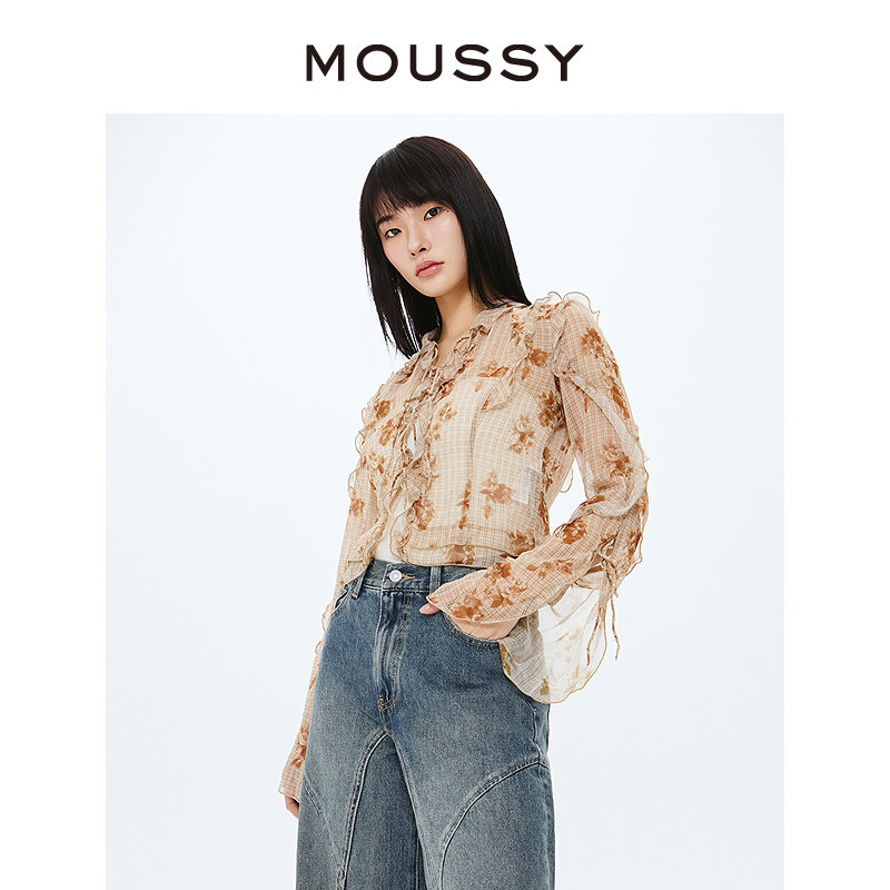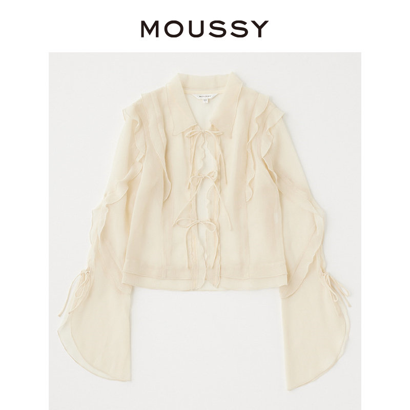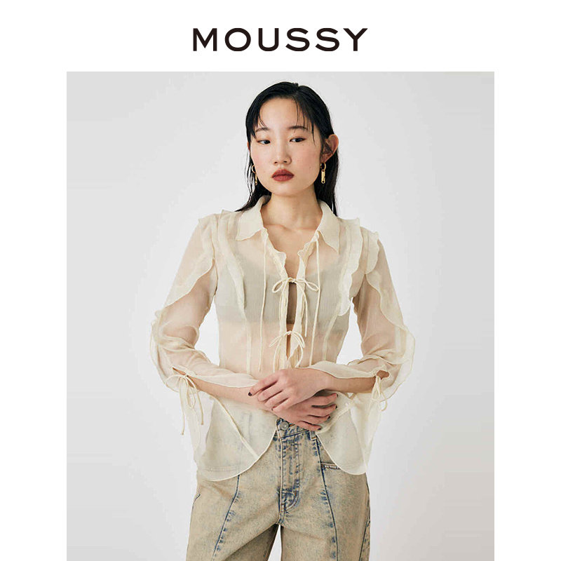 moussy 早春法式优雅浪漫雪纺花边长袖衬衫010HS730-0300