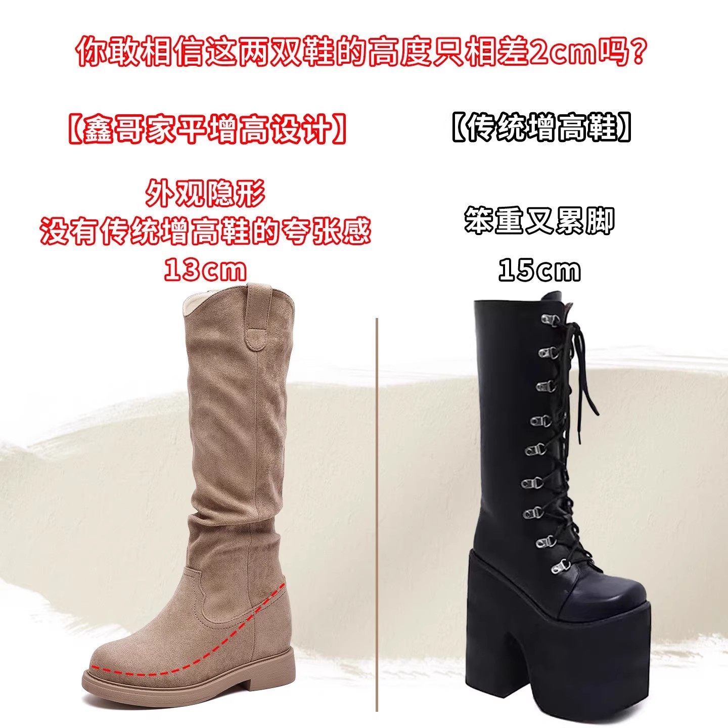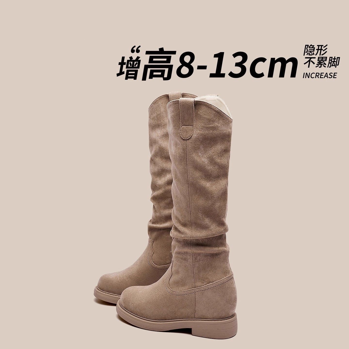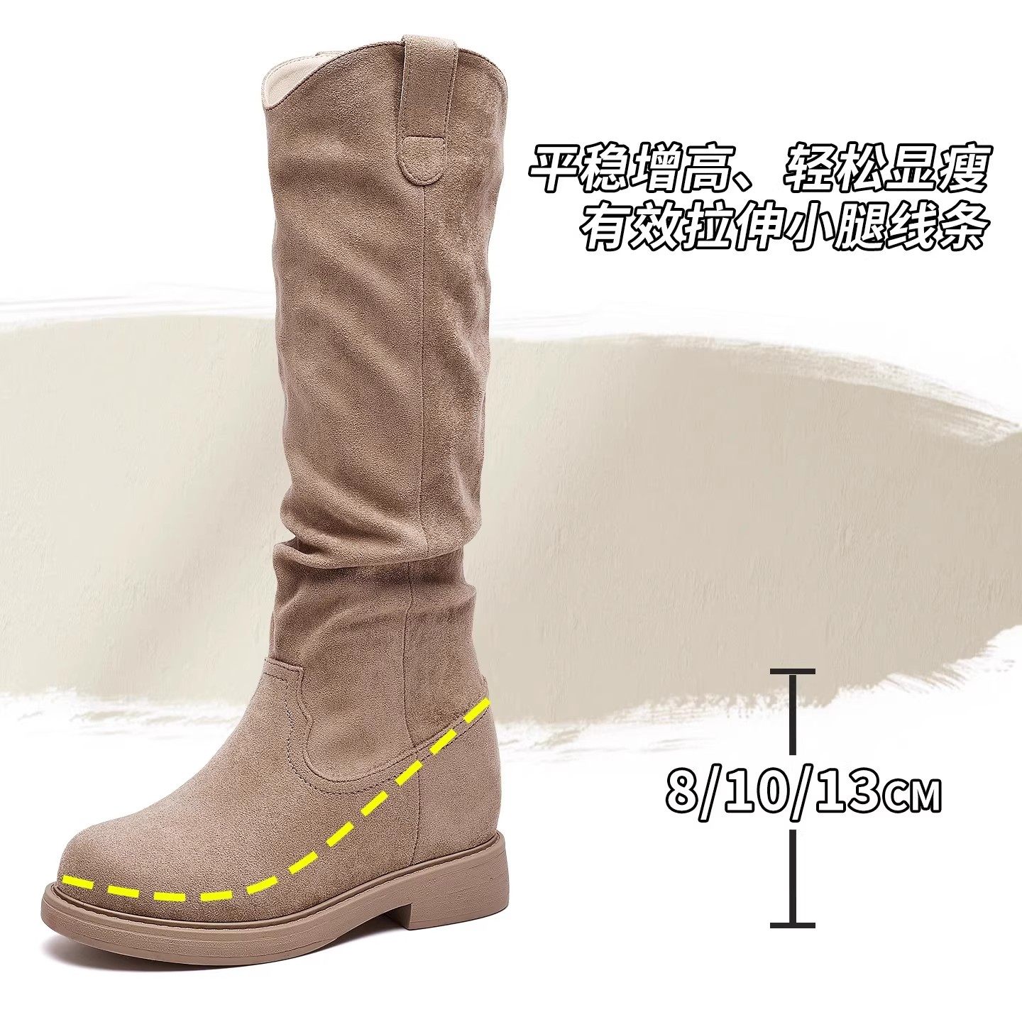 六点大叔小个子内增高两穿高筒靴长筒靴女厚底过膝显瘦绒面长靴子