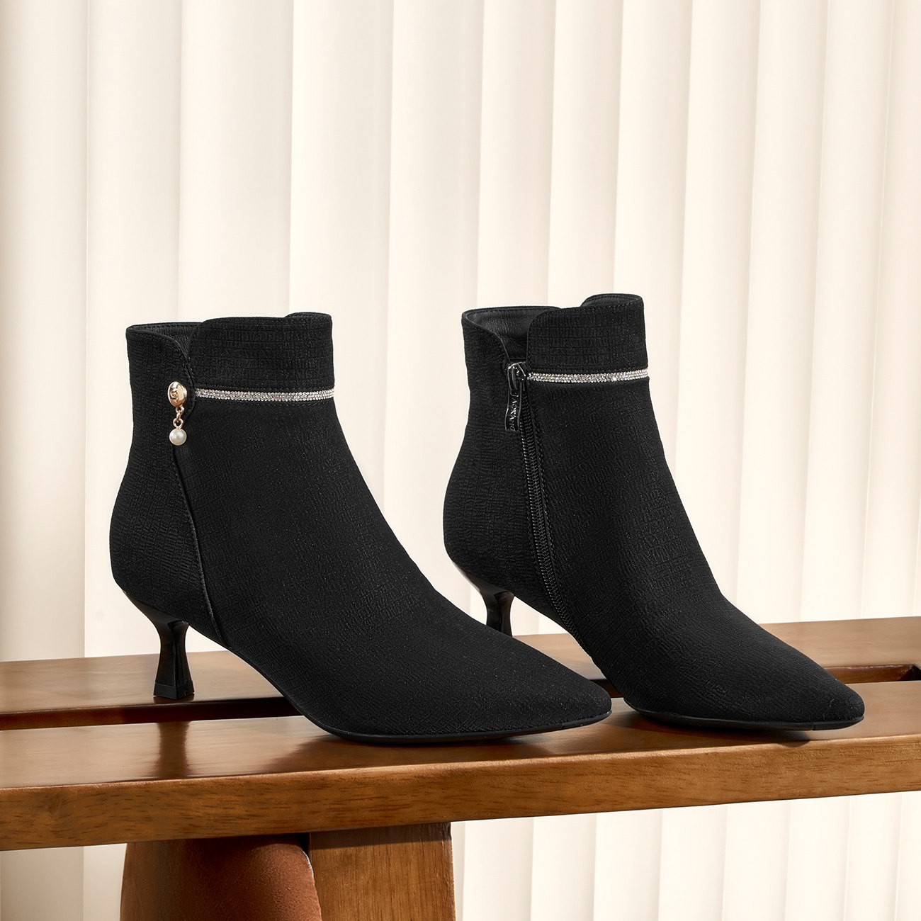 奥康女鞋冬季新款细跟薄绒时尚百搭时装短靴