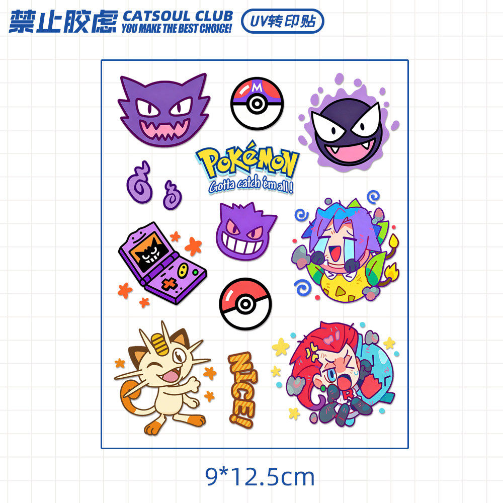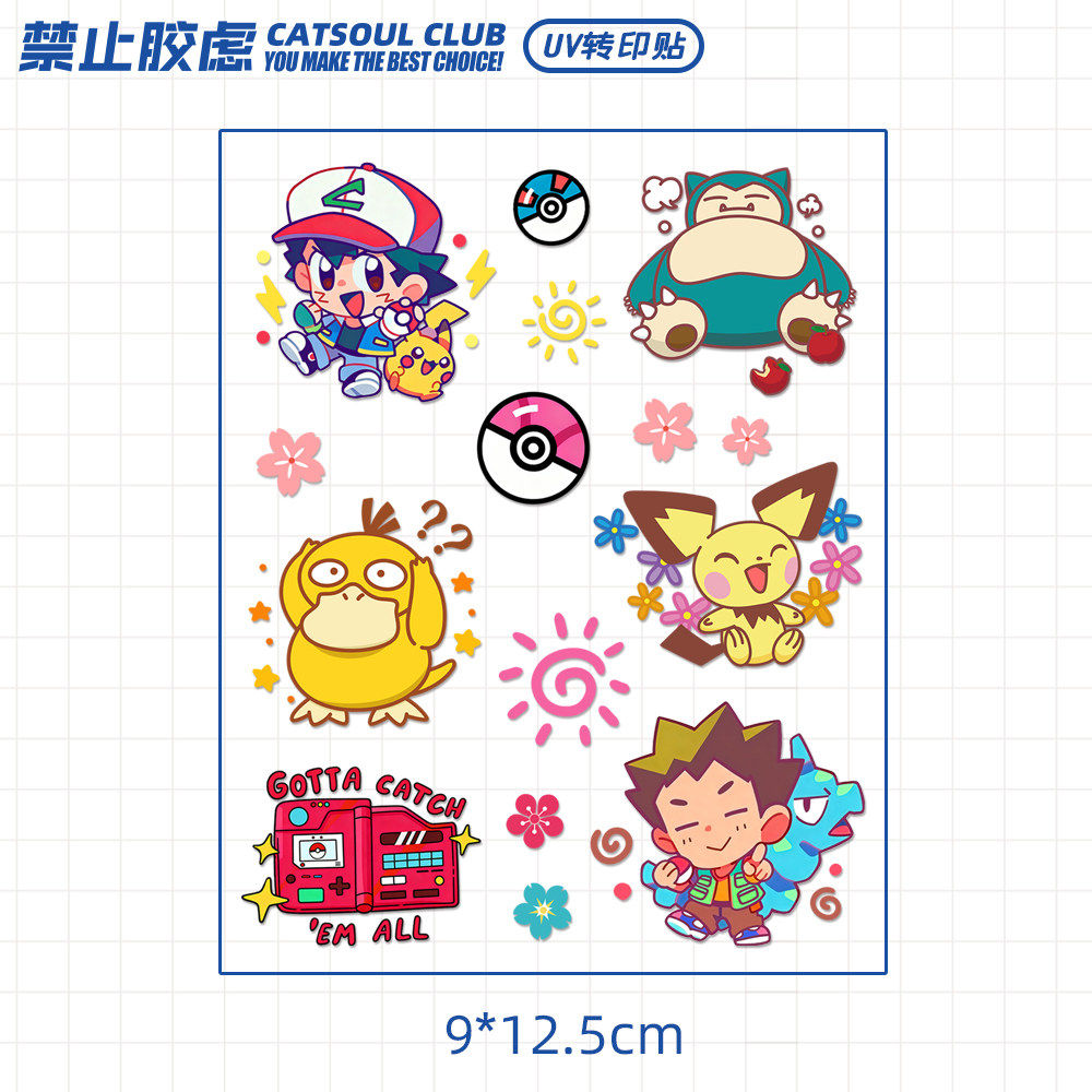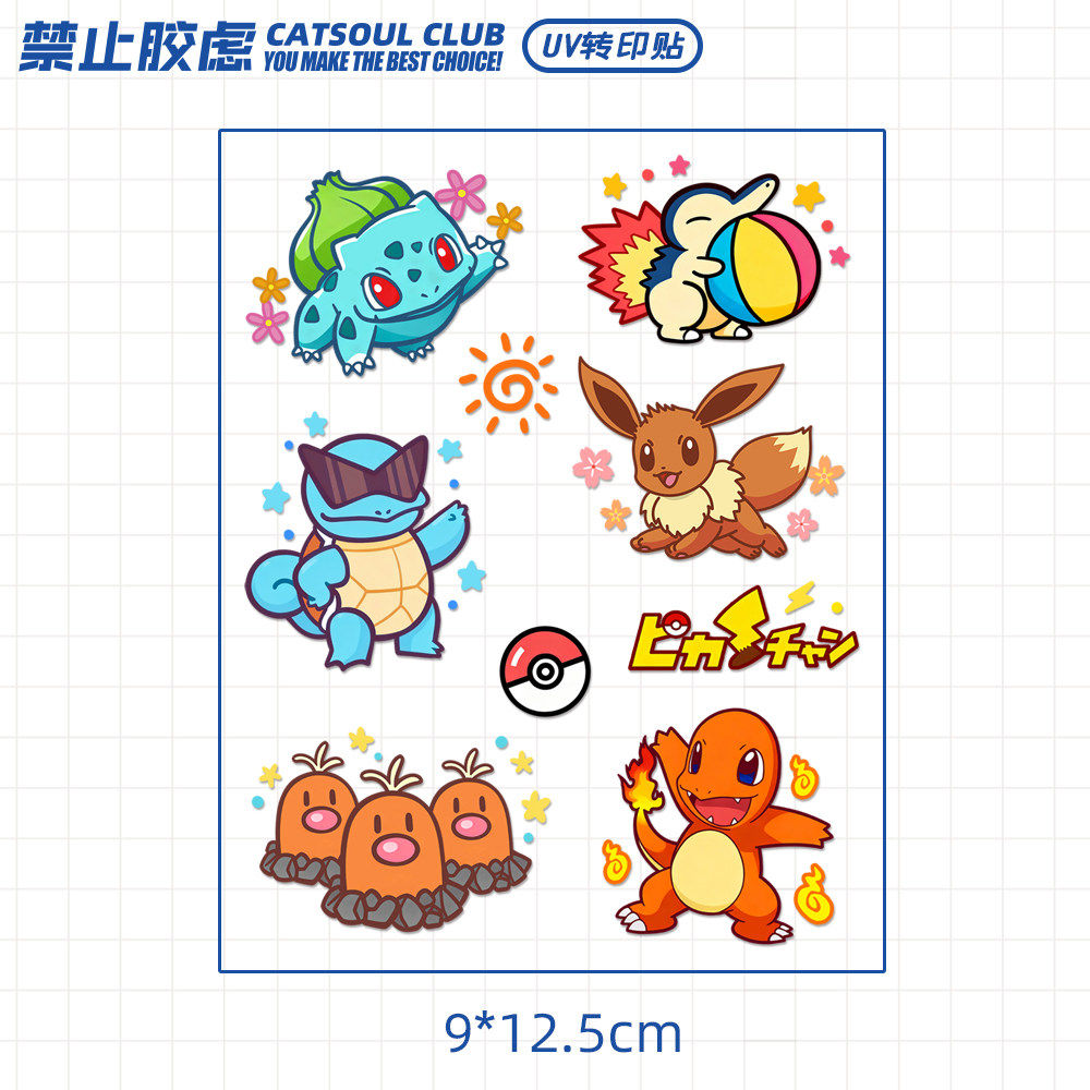 卡通多款宝可梦水晶标贴纸水杯uv转印贴玻璃杯子冰箱金鱼缸贴画