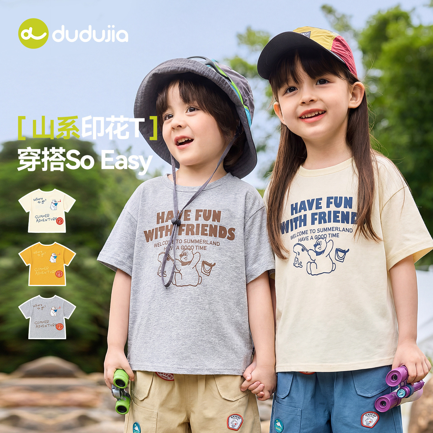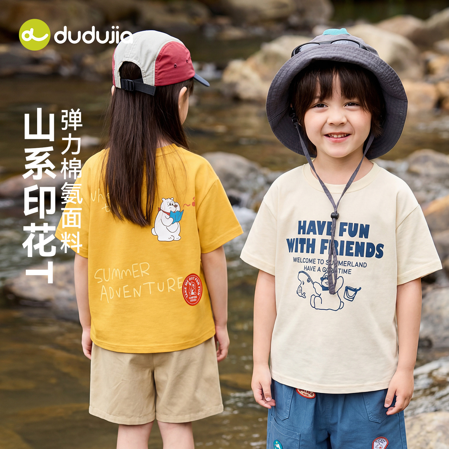 嘟嘟家儿童短袖男童T恤夏薄款女童半袖休闲户外宝宝山系印花上衣