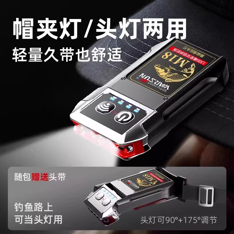 沃尔森夜钓头灯超长续航钓鱼专用感应帽夹灯强光超亮充电头戴夹帽