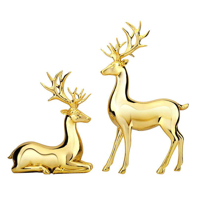 欧式树脂工艺品摆件欧美风格家饰电镀情侣糜鹿客厅电视柜家居摆设