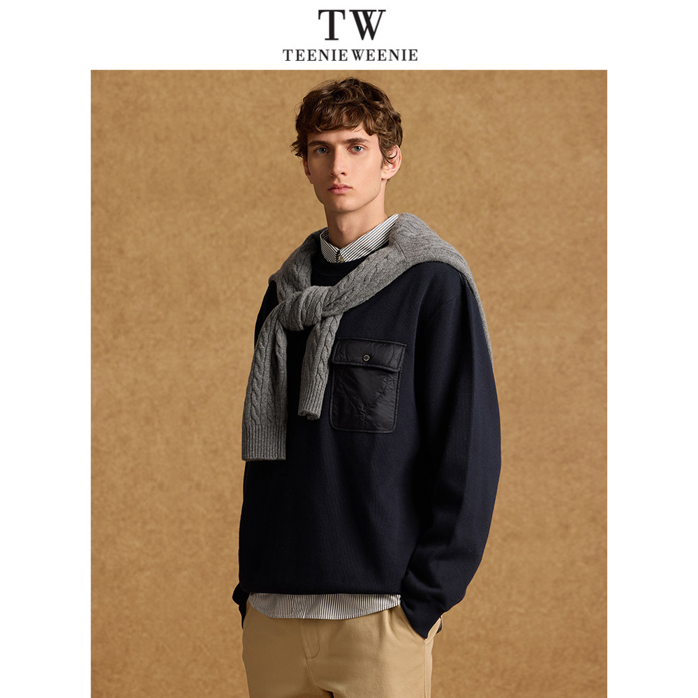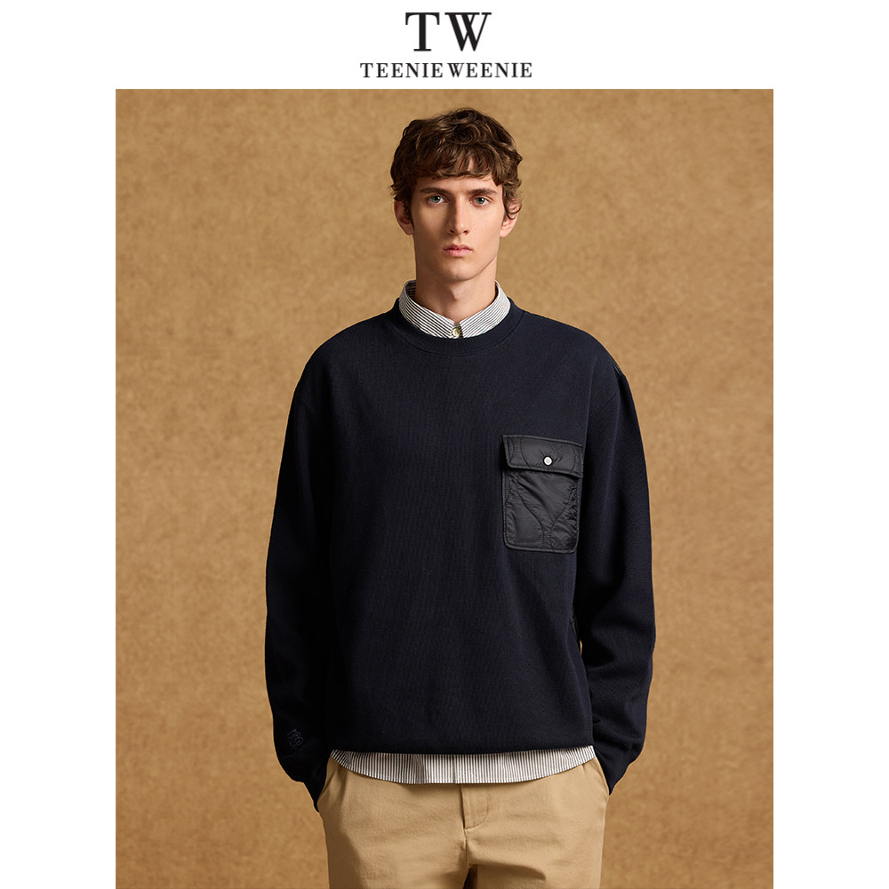 TeenieWeenie小熊男装简约休闲撞色卫衣春季时尚拼接圆领休闲上衣