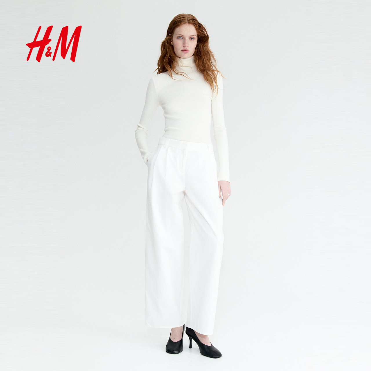 全球花【雅痞美学】大码秋季高级感灰色高腰垂感西装裤斜肩长袖T