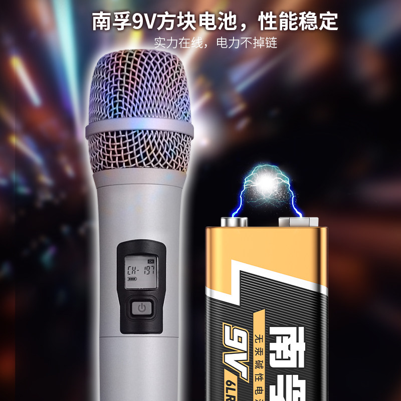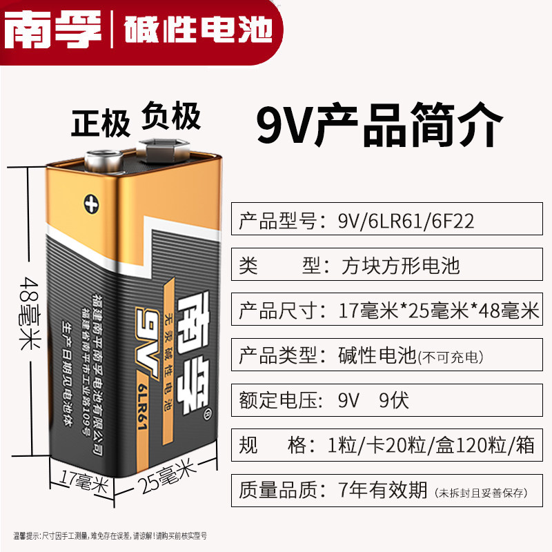 南孚9V电池方形叠层方块九伏万用表测电表烟雾报警器无线话筒碱性